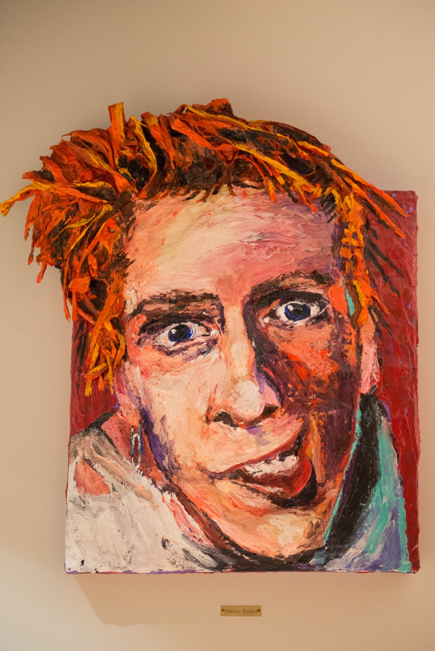 Brett Stuart Wilson is an artist with a simple mission – to “bridge the gap between my passion for art and my respect for the mavericks of music.”  This means creating a series of large mixed-media portraits of some of the biggest personalities in music, names like Ray Charles, Ozzy Osbourne and Sid Vicious   Brett points to his youth in European cities as an important part of his artistic background.  “I credit my mother who was an artist for the luxury of being exposed at an early age to the timeless art and architecture of Europe.”  Combining this art background with his love of music seemed a natural fit for the subject of his paintings. A series of these works will be on display at the WTMD gallery in Towson, where an opening reception is being held this Wednesday night.