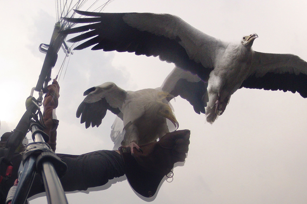After searching the hotel internet at dial-up speeds [cue old modem/AOL sountrack], Boodi (the affectionate Nepali slang for “my old lady”) informed me that she had found something exceptionally unique called parahawking, where you do the usual paragliding stuff, while feeding an African vulture. Run off a mountain with your fate in the hands of a parachute pilot who is strapped to your back…just so you can feed an endangered species a few thousand feet from the earth…why not?