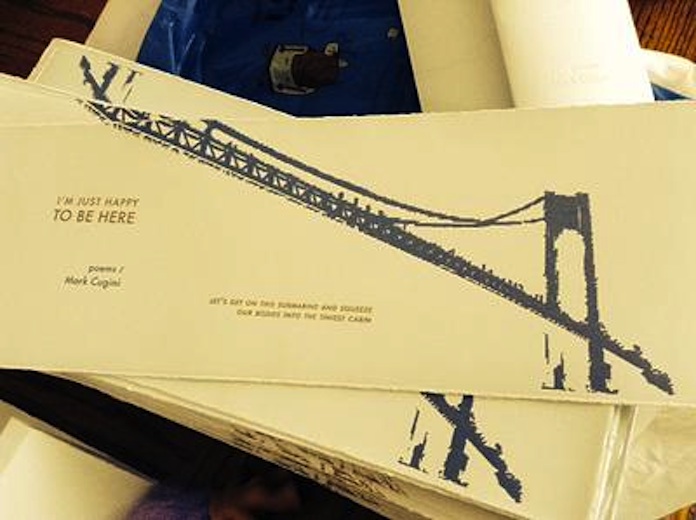 D.C. poet, publisher, and all-around tornado of enthusiasm and goodness, Mark Cugini, is alive and happy about it. He wants you to know that you are alive, too. In his new collection, I’m Just Happy To Be Here, forthcoming from Baltimore’s InkPress Productions, he drops tender reminders, words and sounds like needles jumping across the loose beat on a worn record. Have I mentioned I love this guy and pretty much everything that he does, whether as host of his Three Tents Reading Series in Washington, publishing his excellent journal/small press, Big Lucks, or blasting charmed and rollicking audiences at area-events, Cug is a consistent force of love and freshness on the local literary scene. Enough from me. Pre-order his book at the link below and read the interview. Mark is fantastic. If you don’t already know him, get on it.