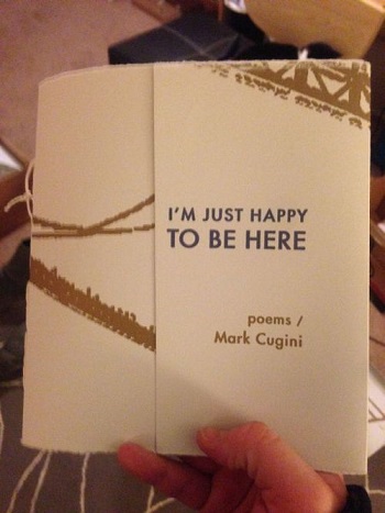 D.C. poet, publisher, and all-around tornado of enthusiasm and goodness, Mark Cugini, is alive and happy about it. He wants you to know that you are alive, too. In his new collection, I’m Just Happy To Be Here, forthcoming from Baltimore’s InkPress Productions, he drops tender reminders, words and sounds like needles jumping across the loose beat on a worn record. Have I mentioned I love this guy and pretty much everything that he does, whether as host of his Three Tents Reading Series in Washington, publishing his excellent journal/small press, Big Lucks, or blasting charmed and rollicking audiences at area-events, Cug is a consistent force of love and freshness on the local literary scene. Enough from me. Pre-order his book at the link below and read the interview. Mark is fantastic. If you don’t already know him, get on it.