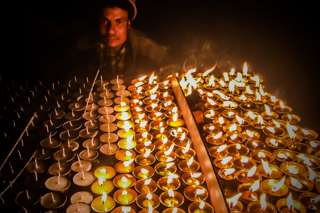 he lights butter lamps
