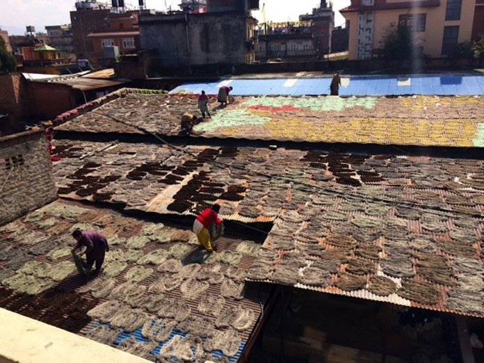 They dry the wool on the roof tops,
