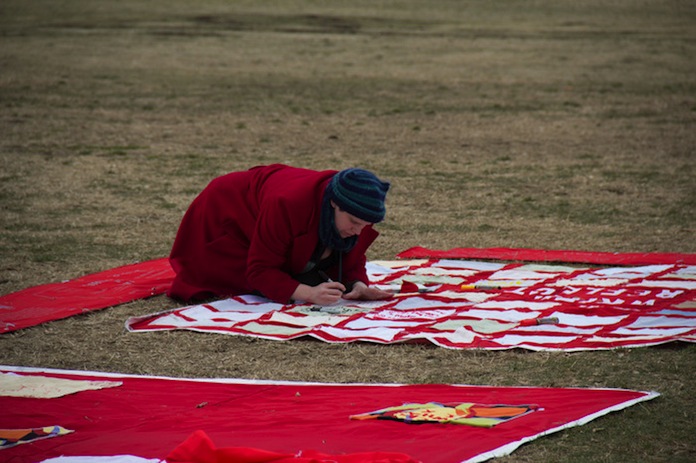 The number and location of stops are determined by local interest, partner organizations, and funding received from the group’s recently launched Kickstarter. “Giving to our Kickstarter will allow us to take The Monument Quilt to places and people who will truly benefit from it,” says FORCE Co-Director Rebecca Nagle, “And those who give to our Kickstarter will also receive amazing prizes that we are really excited to share!” Consent themed unisex underwear are among the prizes that have been getting a lot of buzz. Nagle and Brancato also plan to gift an incredible, one of a kind art project- but supporters will have to keep checking in to find out what it is.