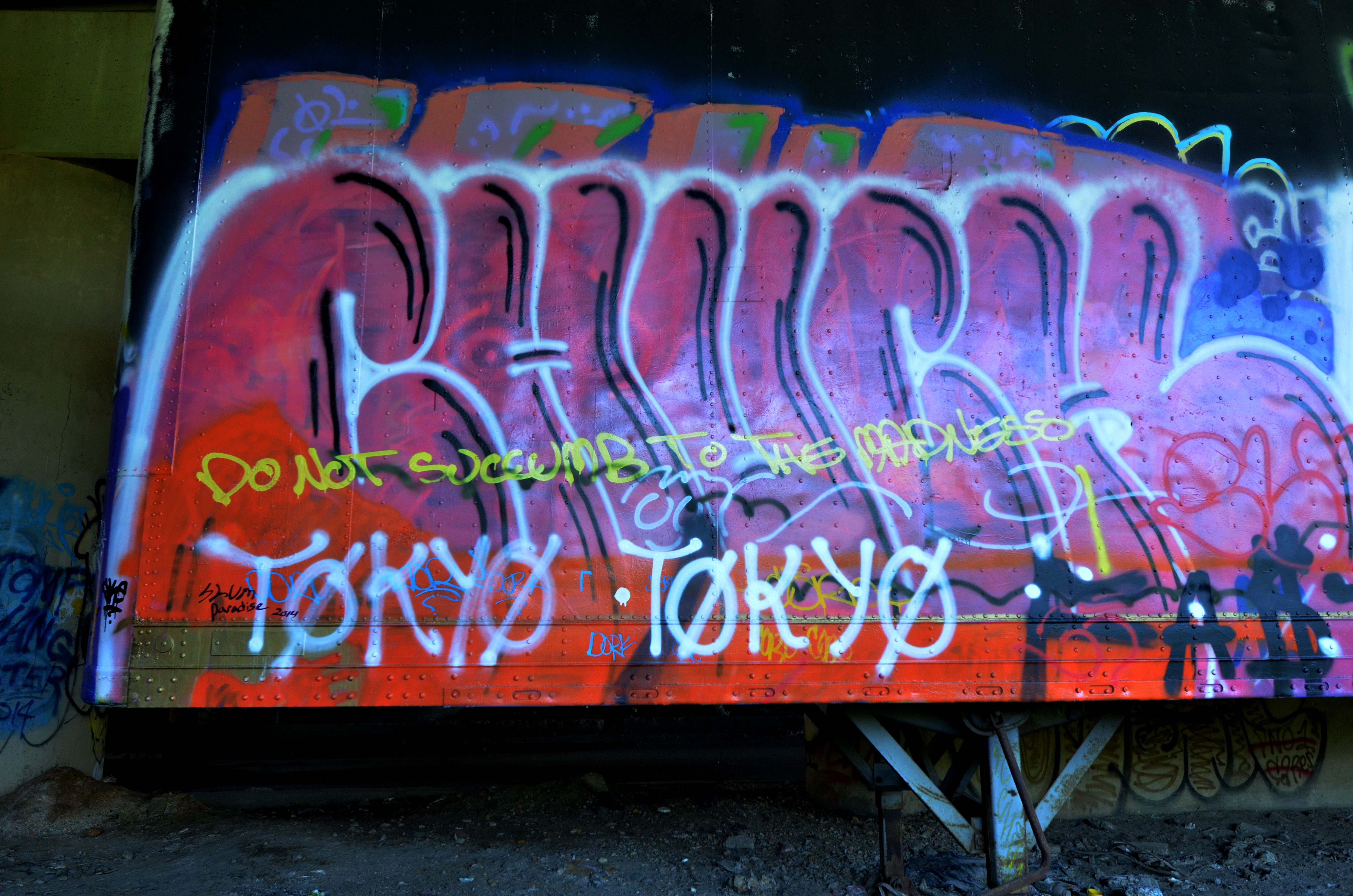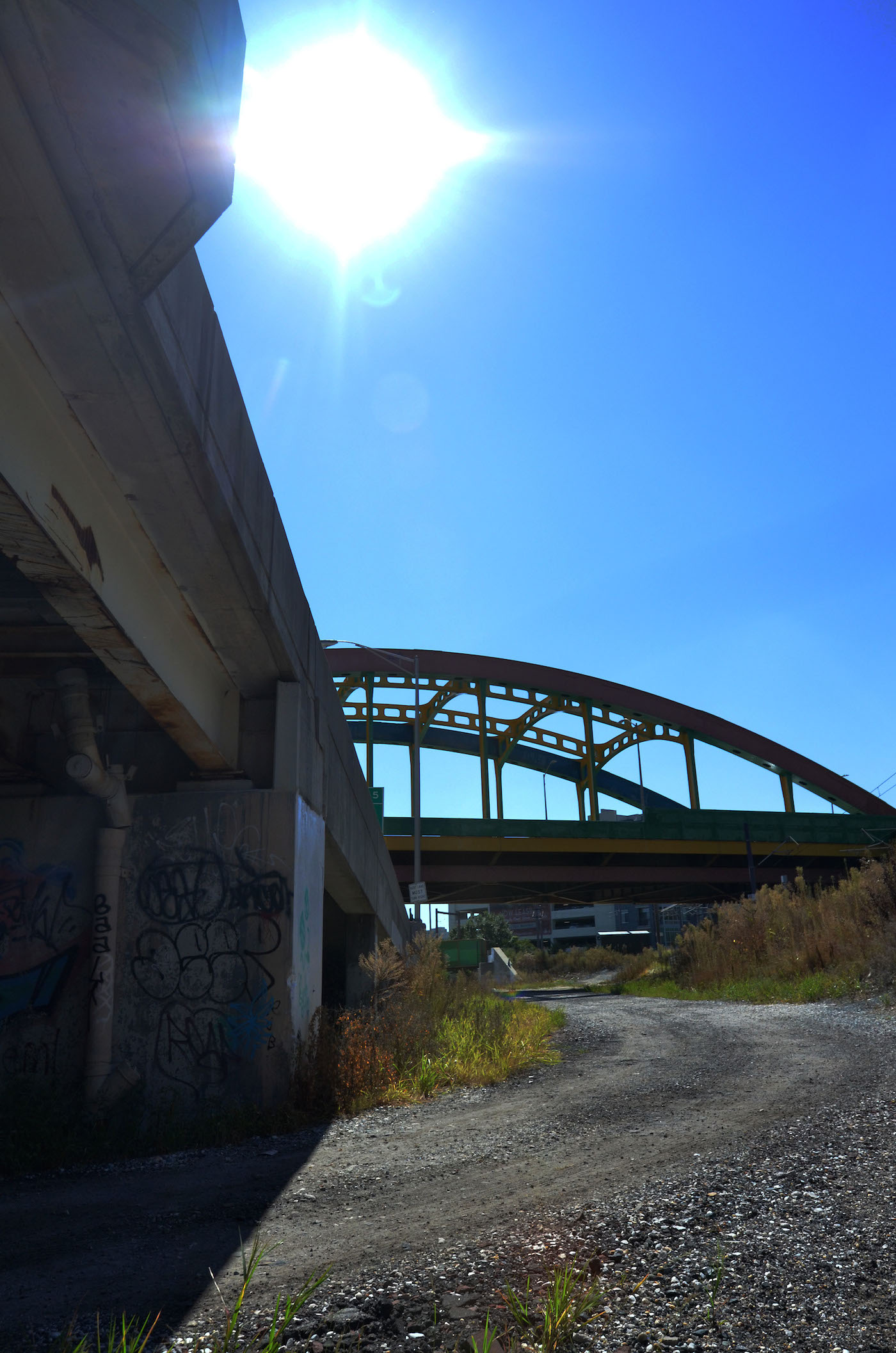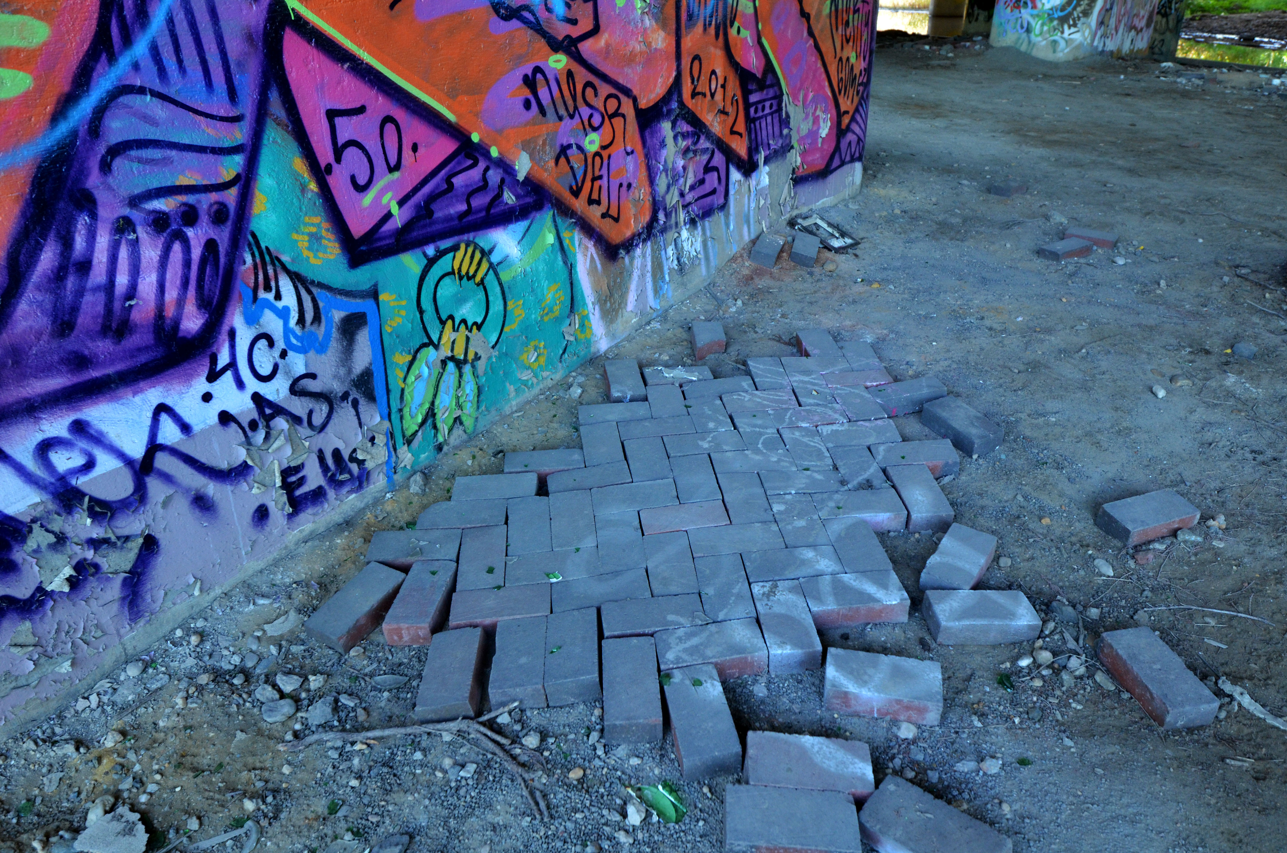 The park isn’t just a “graffiti” park – it’s a multidimensional space most accurately described as an urban art park. Unlike flat land with short grass and a couple of benches, this park acknowledges that it’s in a city. It uses the city as a base for its structure, flowing with the concrete columns that support Baltimore’s infrastructure. It’s an urban space of play, not escape. Located in the heart of Baltimore, behind MICA’s Fox building, underneath the Jones Falls Expressway, and right by Station North, Section1 will take residence in the dynamic concrete jungle. The place is an abandoned, state-owned plot of columns and outer foliage that serves as an illegal dumping ground and home for quite a few feral cats and the work of Baltimore graffiti artists. It’s an organically inorganic forest begging for human creativity.