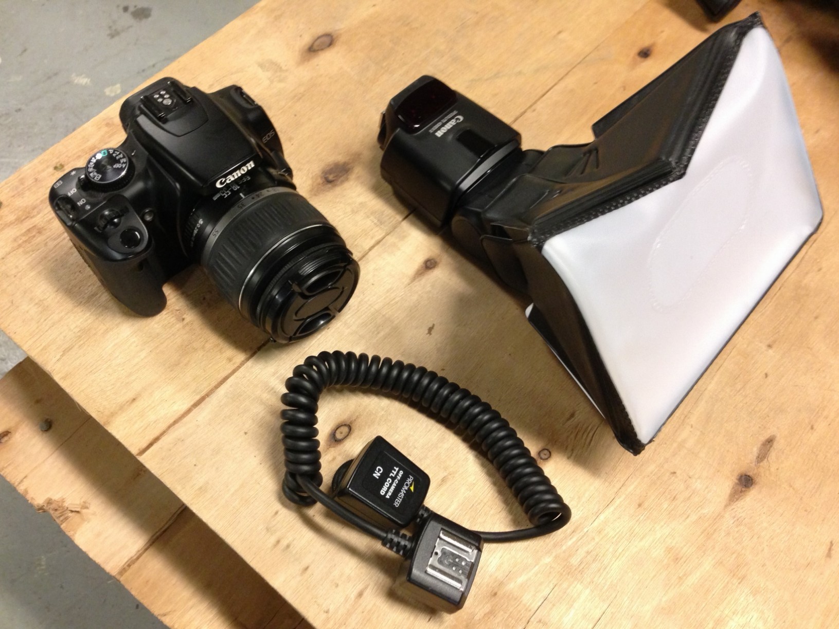 And something else you will need if you want to copy my steps exactly is a Canon XTi digital rebel SLR camera, a Speedlite 430 EXII strobe and an attachable mini soft box of any kind, it doesn’t matter. And a TTL cable so you can get those rockstar flash angles.