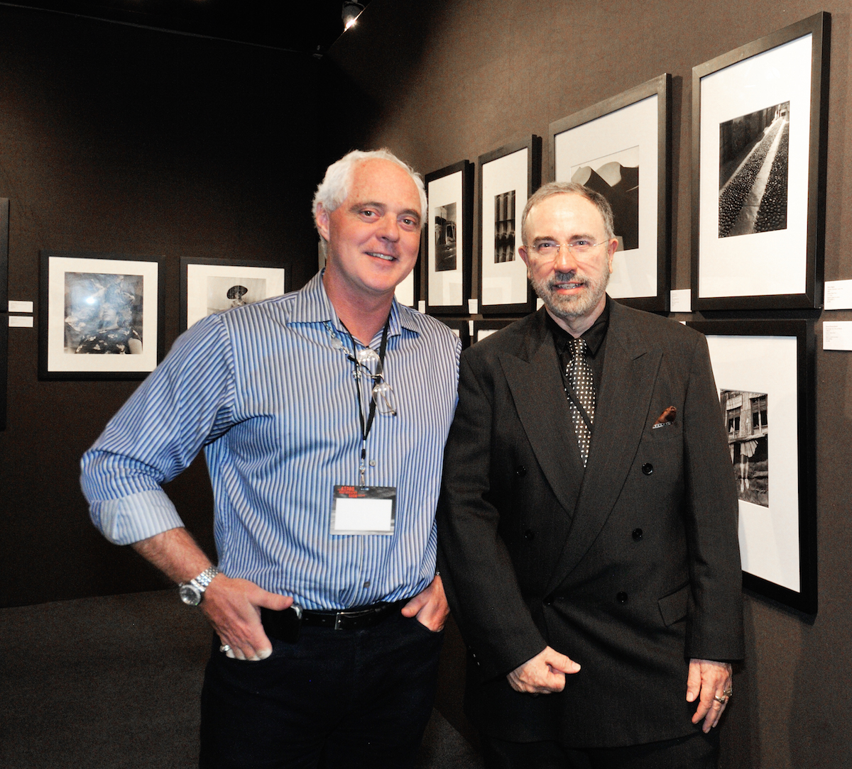 AIPAD Vice President and President-elect Kraige Block (left) and Spencer Throckmorton (right), President of Throckmorton Fine Art at their 2015 AIPAD exhibit. One of the photographers featured at by their gallery is Cuban-born Mario Algaze whose 2002 print (top-right) captures a street scene in Cuzco, Peru.