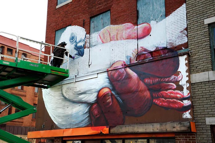 Gaia completes his mural on North and Charles – photo by Martha Cooper It has been hard to miss the…